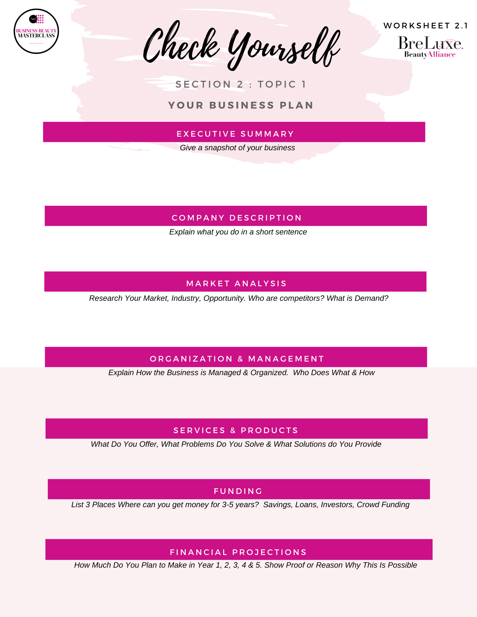 Start with the 30-minute Class video, then complete the Worksheets BEFORE starting the Next Section.